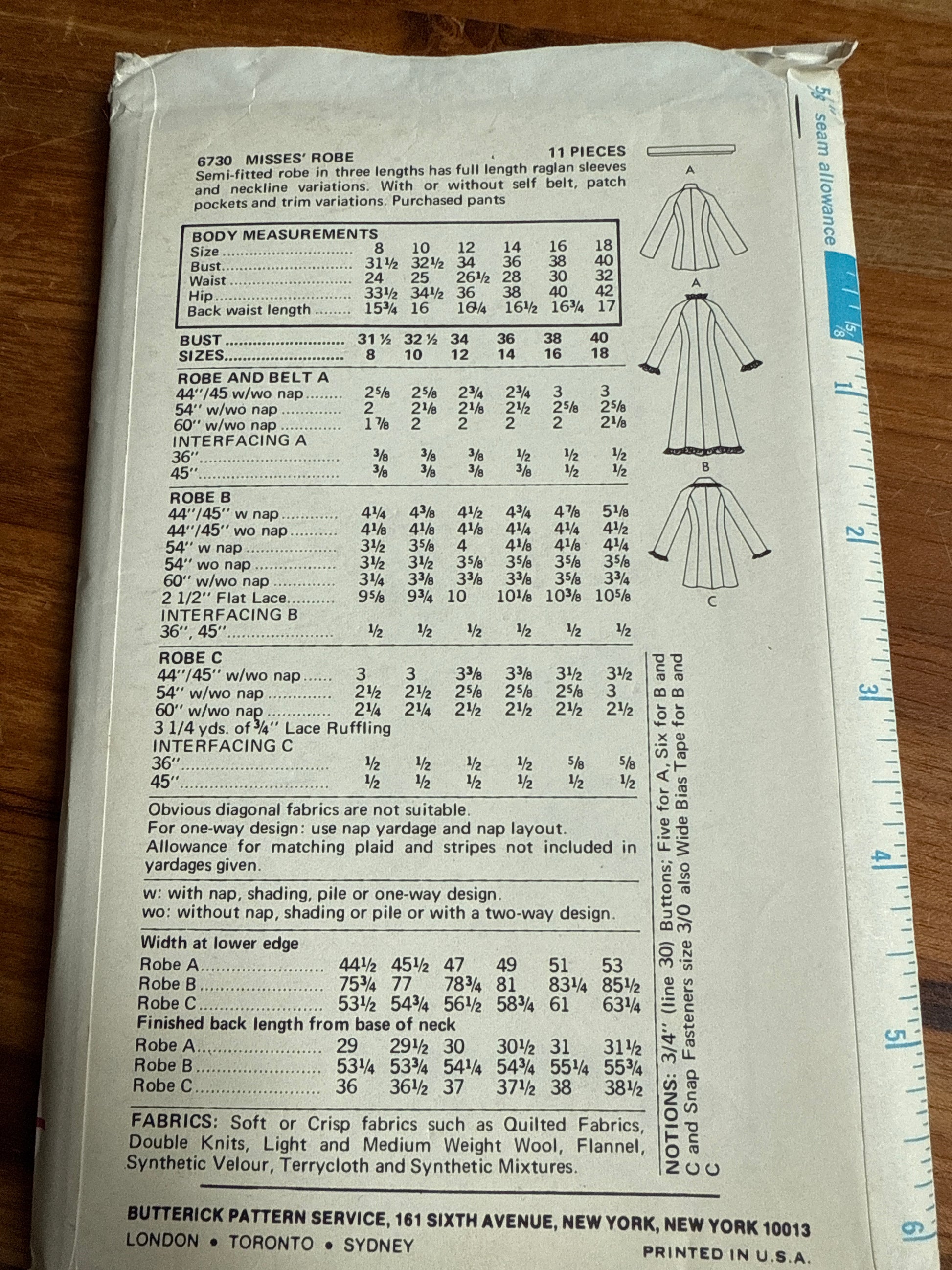 6730 Butterick Robe Pattern SZ 12
