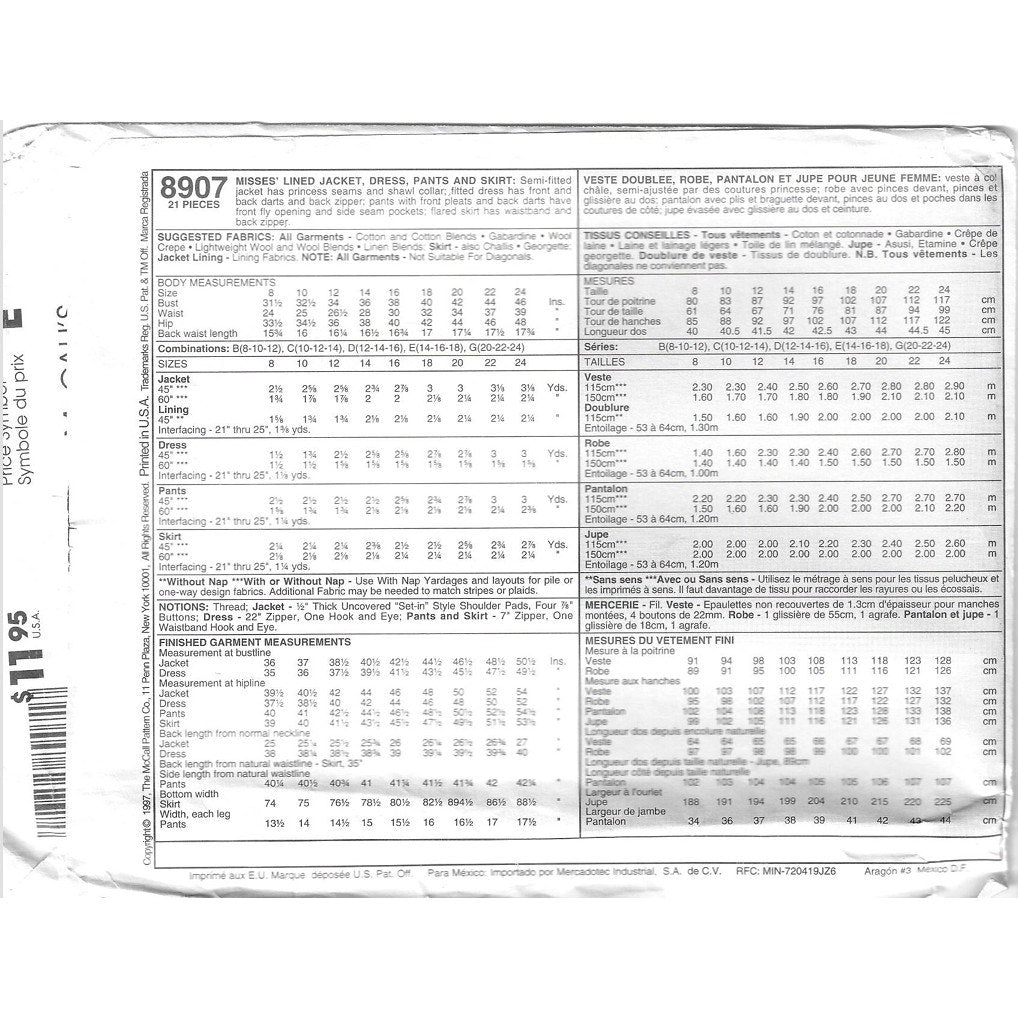 McCall's Vintage Sewing Pattern 8907 FF/UC Women's Sizes 8,10,12 Suit Pant Dress