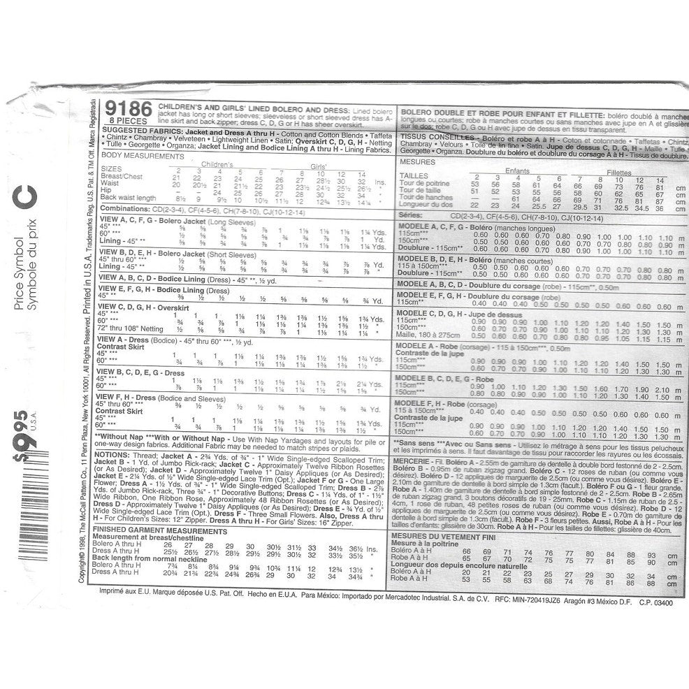 McCall's Vintage Sewing Pattern 9186 FF/UC Childrens Sizes 7,8,10 8 Outfits
